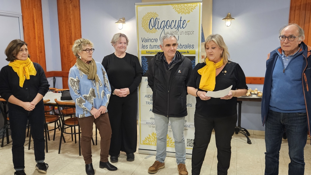 Lors d’une petite cérémonie conviviale à COMBRIT ce lundi 19 Janvier, Mme Sophie LANGEARD, Présidente de RGBM, a remis à Bernard LEON un chèque de 2000 €, fruit de leurs prestations théâtrales « le ballon du petit » , à Bénodet et Fouesnant en fin d’année 2025. Un beau geste à saluer, de solidarité et de soutien, en faveur de la recherche sur les tumeurs cérébrales cancéreuses. Un grand merci au ROTARY !